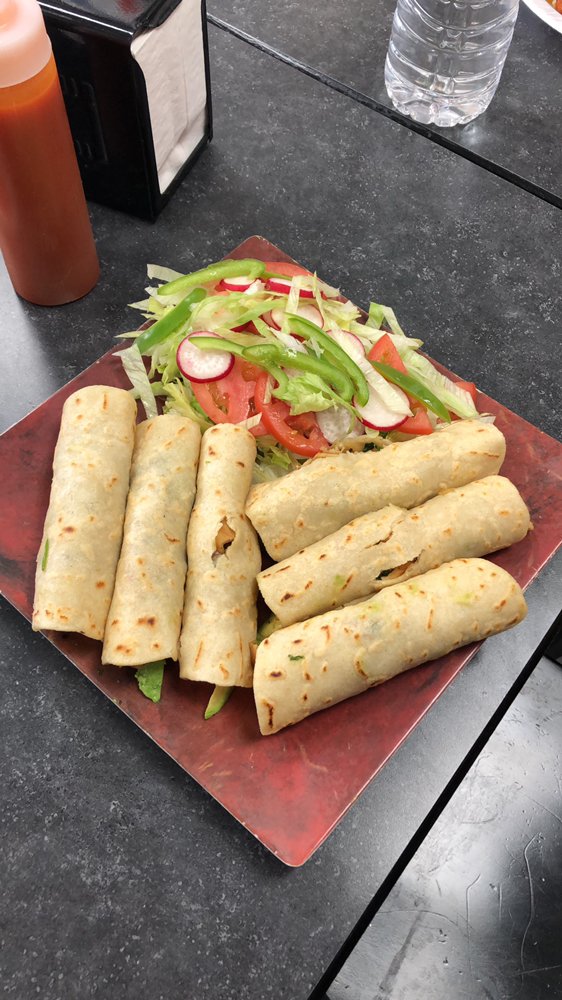 Honduran style flour tortilla with grilled chicken. Baleadas regulares: frijoles, queso, crema, aguacate, huevo con chorizo, y pechuga asada honduran style flour tortilla: filled with beans, cheese, cream, avocado, sausage and egg, and grilled chicken.
